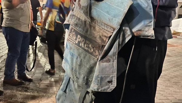 تعج باحة المستشفى باستمرار بنساء ورجال يرتدون سترات واقية من الرصاص كتب عليها "صحافة" بالانكليزية، ويضعون خوذات على رؤوسهم فيما تتكرر عمليات القصف بالقرب من المستشفى وتكون دامية في معظم الأحيان.