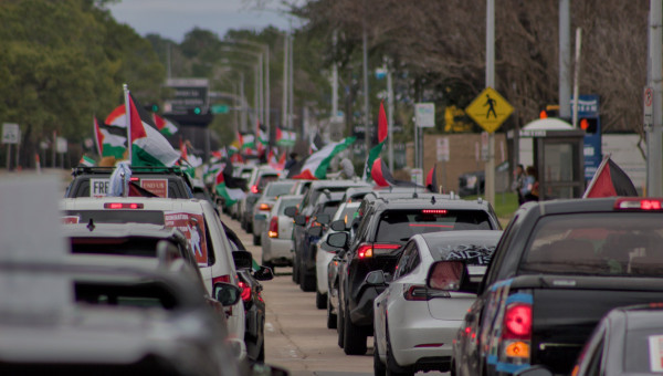 وفي السياق ذاته، خرجت في مدينة هيوستن بولاية تكساس مسيرة مركبات ضخمة رفع عليها العلم الفلسطيني واليافطات المطالبة بوقف الحرب، حيث أغلق المحتجون الشوارع المحيطة بمطار جورج بوش الدولي.