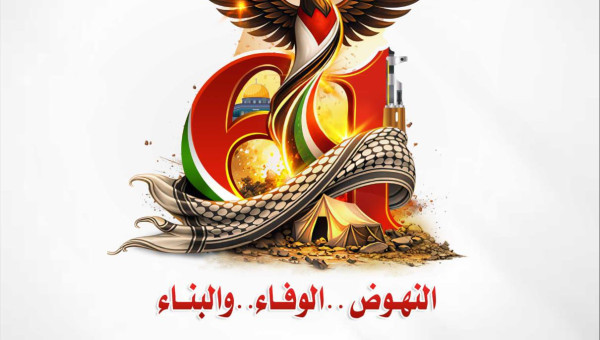 وفي هذه المناسبة تطلق حركة التحرير الوطني الفلسطيني فتح مفوضية الاعلام في الأقاليم الجنوبية شعار الانطلاقة الــ61 للثورة الفلسطينية - انطلاقة حركة فتــح مؤكدين تمسكنا بالثوابت الوطنية وانحيازنا المطلق لصوت الناس الذين دفعوا الثمن غالياً طوال مسيرة الكفاح مع رفضنا المطلق لأي مساس بالحقوق الأصيلة والثابتة مهما بلغت التحديات.